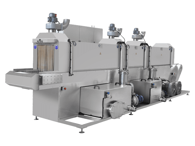 Cleaning large industrial parts is of critical importance in many sectors such as automotive, machine manufacturing, metalworking, and defense. To meet this need, conveyor belt tunnel part washing, rinsing, and drying machines come into play. These special 7-meter-long machines enable the automatic and efficient cleaning of even large parts, saving you time and labor and significantly increasing your production efficiency.